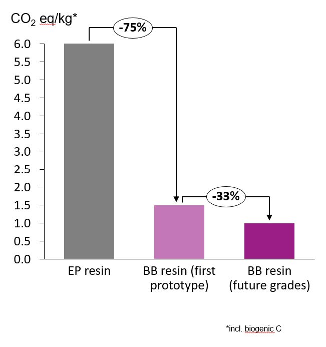 Besonderheiten: um 75 Prozent geringerer CO2-Fußabdruck; Biobasiert aus Abfallmaterial der Papier- und Zellstoffindustrie; Drop-in-Harz; einfache Anwendung, niedrige Viskosität; ausgezeichnete Leistung, insbesondere in Kombination mit Flachs