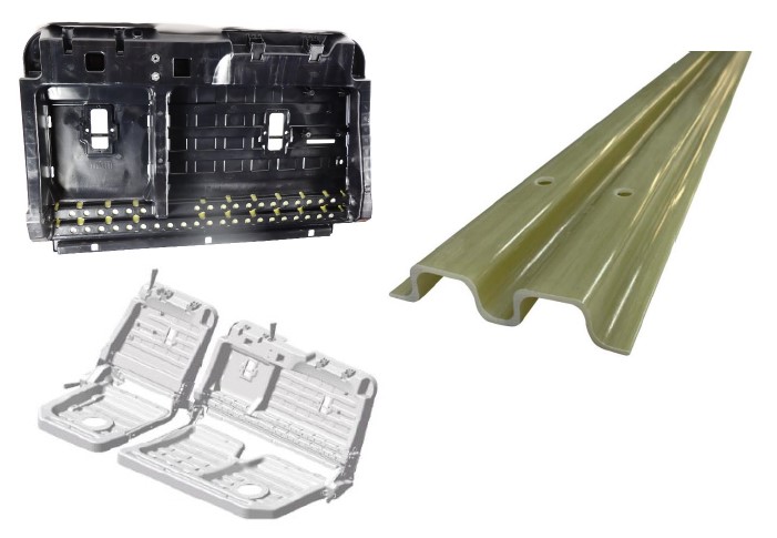 Toyota Tundra Sitzlehnenkonstruktion aus Verbundwerkstoffen: Eine Ganzstahlbaugruppe, die 60 gestanzte und geschweißte Teile enthielt, wurde bei einer Gewichtsreduktion um ein Fünftel durch vier Verbundwerkstoffteile ersetzt, wobei alle relevanten Crash-Test-Anforderungen erfüllt werden.