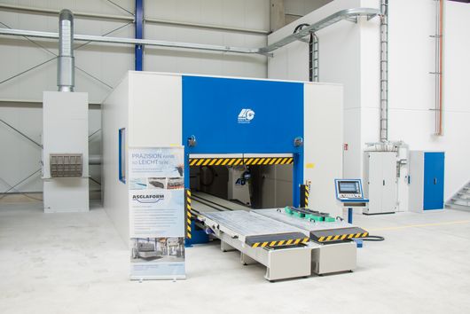Das Unternehmen Asglaform composites stellt künftig Bauteile aus faserverstärkten Kunststoffen mit einer eigenen CNC-Fräsanlage her. Seit 2019 steht in der Produktion des Unternehmens außertem eine 2.500-Tonnen-Presse mit moderner Ofentechnik. Dort werden Composite-Teile wie beispielsweise Reserveradmulden, Unterbodenverkleidungen und Batterieträger hergestellt. Mit dem neuen präzisen und dynamischen Sechs-Achs-Bearbeitungszentrum ist nun auch die nachfolgende Bearbeitung der Bauteile möglich.