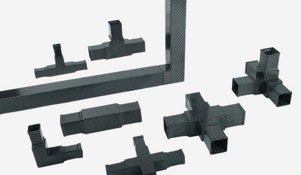 Bild oben: Das Profil-Programm umfasst 40×40 mm Hochpräzisionsrohre aus CFK mit einer Standardlänge von 1600 mm sowie die passenden Verbinder. (Quelle: Refitech)