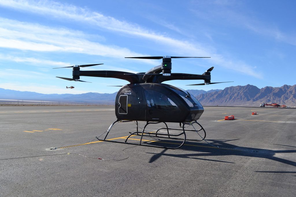 An seinen vier Armen aus Kohlefaser drehen sich jeweils zwei gegenläufige Rotoren, acht Propeller heben ihn in die Luft. Die Energie kommt von zwei Lithium-Batterien mit je 7,5 kWh Leistung, die von einem Benzinmotor aufgeladen werden.
