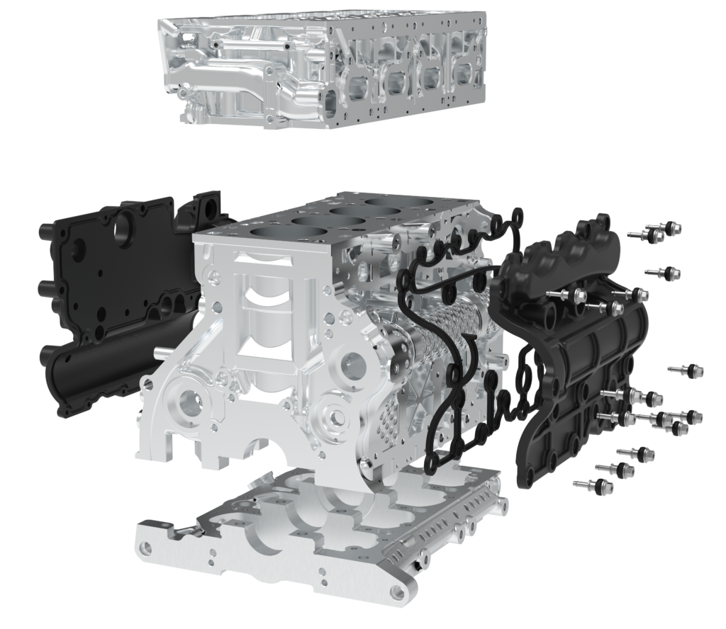 Bild oben: FEV zeigt im Projekt Leimot (Leichtbau Motor), was beim Verbrennungsmotor noch möglich ist: Rund 21 Prozent Gewichtseinsparung dank additiver Fertigungsmethoden, zusätzlich Effizienzsteigerung von Motorfunktionen wie zum Beispiel Kühlung oder Ölkreislauf. (Quelle: FEV Group)