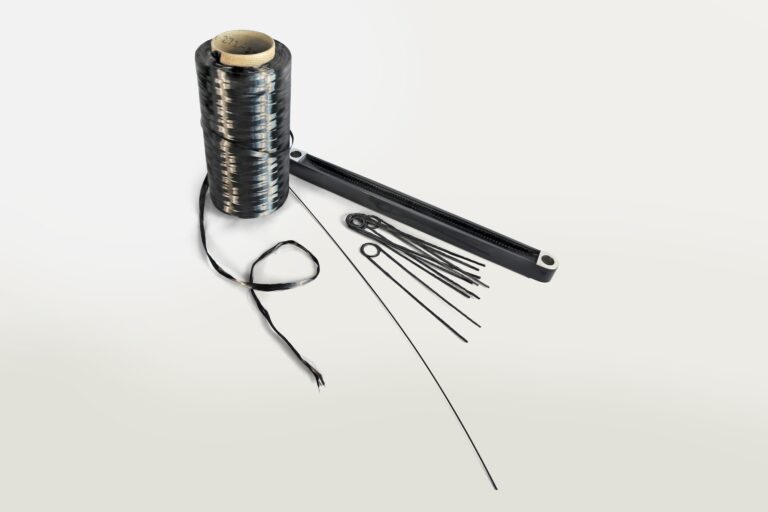 Aus Carbonfasern wird ein Kunststoffstrang mit Endlosfaserverstärkung, der sich mit dem neuen additiven Verfahren zu Preformlingen freier Geometrie verarbeiten lässt. Die Einleger werden als lokale Versteifungs- und Verstärkungselemente in die Bauteile integriert. (Quelle: Engel)