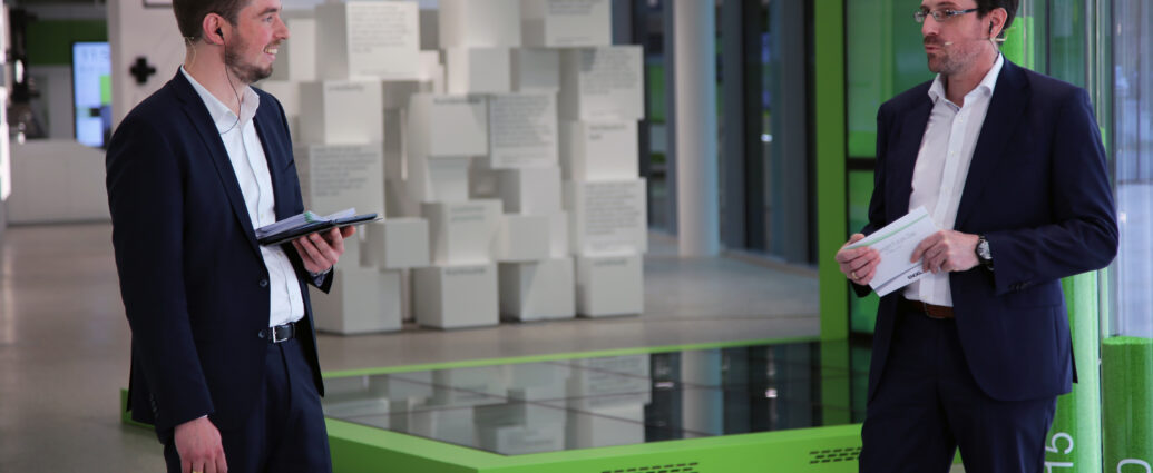 Bild oben: Dr. Norbert Müller, Leiter Entwicklung smart machine von ENGEL, (rechts) und Dr. Bastian Brenken, Geschäftsführer des Composites United e.V., (links) führten durchs Programm und moderierten die Q&A-Sessions. (Quelle: Engel)