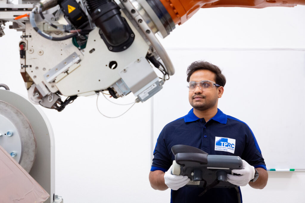 Im TPRC ThermoPlastic composites Research Center in Enschede, Niederlande, arbeiten führende Technologieunternehmen an den Leichtbauwerkstoffen für die Luftfahrt der Zukunft: thermoplastischen Faserverbundkunststoffen.
