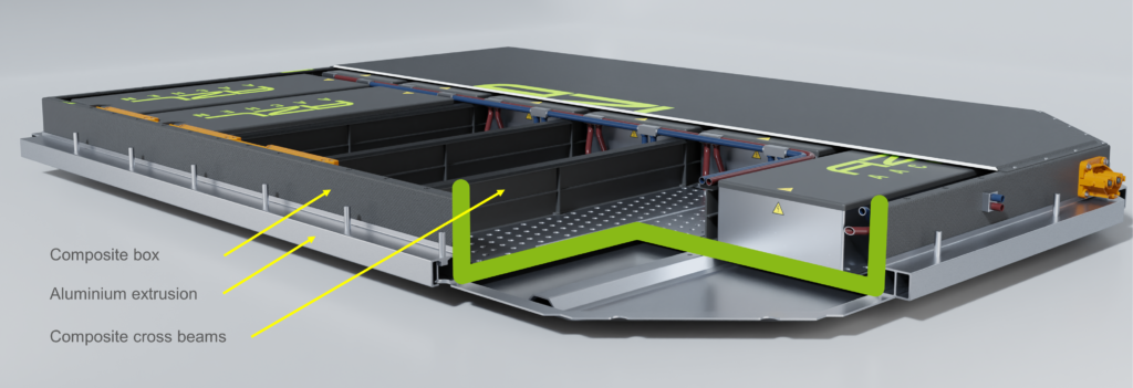 Im Projekt wurden – basierend auf einer Marktanalyse von 44 existierenden Serienkomponenten und Konzepten und einer Übersicht über die verschiedenen Standards sowie Anforderungen auf nationaler, internationaler und OEM-Ebene – für ein Batteriegehäuse in fünf Teile definiert: die Gehäusewanne, die Bodenschutzplatte, den Crash-Rahmen, die Querbalken und den Gehäusedeckel. Die Anforderung an die Multimaterial-Lösung war, mindestens gleiche mechanische Kennwerte zu erreichen. So sollten beispielsweise mindestens gleiche Steifigkeiten, Sicherheiten bei seitlichem Aufprall, EMI-Abschirmung sowie Flammschutz vorhanden sein.