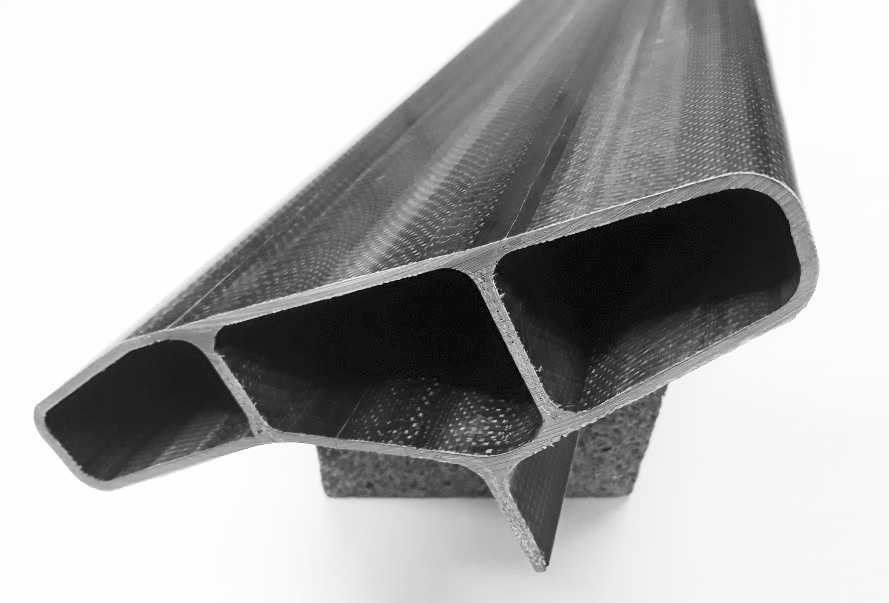 Bild oben: Ressourcenschonende Leichtbau-Technologie ermöglicht Kreislaufwirtschaft im Automobilbau: Der hochstabile Seitenschweller für E-Fahrzeug-Karosserien wird mit Pultrusionstechnik hergestellt und kann wiederverwendet werden. (Quelle: Fraunhofer IWU)