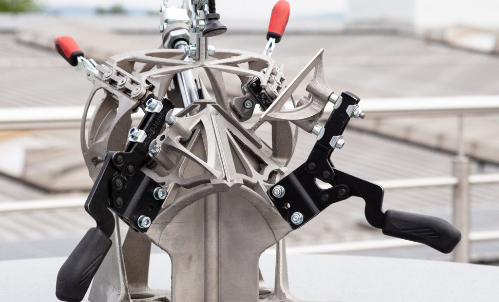 Der 3D-Metalldruck macht nicht nur die Entstehung der häufig wechselnden Projekte deutlich schneller. Dank der passgenauen additiven Fertigung können die iterativen Optimierungen für konventionell gefertigte Spannvorrichtungen entfallen. Andererseits kann für den Anwender sowohl schneller mit der Fertigung der Blechbauteile begonnen und die Fertigung deutlich beschleunigt werden.