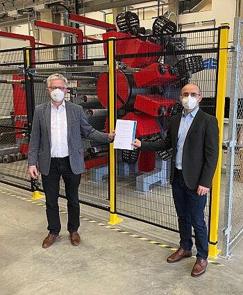Bild oben: Der Geschäftsführer des ITA Augsburg, Prof. Dr. Stefan Schlichter (li), bei der Übergabe der Mitgliedsurkunde durch Zuse-Präsidiumsmitglied Dr. Bayram Aslan in Augsburg. (Quelle: ITA Augsburg)