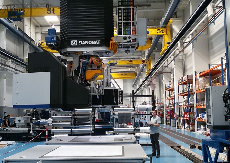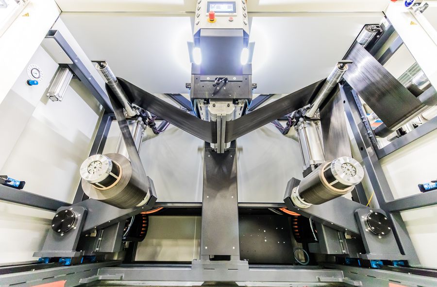 ⇒ Null-Fehler-Fertigungsprozess: Herzstück des Null-Fehler-Herstellungsprozesses sind eine automatisierte Trockenfaserplatzierung (DFP) und eine automatisierte Trockenmaterialplatzierung (ADMP). Die gesamte Verarbeitungskette besteht aus vier Schritten. Der Produktionsprozess wird mit einem Inline-kontrollsystem beim Lay-up sowie eine Überwachungssystem beim Infusions- und Aushärtungsprozess überwacht.