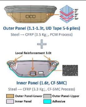 ⇒ Schnelle Herstellung komplexer TP-Verbundwerkstoffe: Automatisierte, kurzzyklische Produktion von thermoplastischen Polymerverbundwerkstoffen mit besonderem Fokus auf hoher Funktionsintegration, Komplexität und Recyclingfähigkeit der Bauteile auf Basis der T-RTM-Technologie. - Hyundai Motor Group zusammen mit Hyundai Steel Company, Hyundai Motor Group – Polymer Research Lab, Mitsubishi Chemical Corporation, SK Chemicals