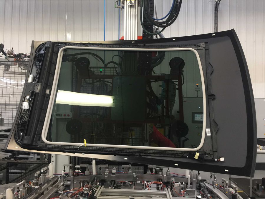 ⇒ Führungsschienen aus Verbundwerkstoff für ein Rollo-Schiebedach: Die Verbundschienen werden aus einem 15% GF-verstärkte Styrol-Maleinsäureanhydrid/Acrylnitril-Butadien-Styrol (SMA/ABS-GF)-Verbund gespritzt, um genaue Abmessungen, enge Toleranzen, gute Steifigkeit und Festigkeit sowie eine ausgezeichnete Haftung mit Metall- und Glasunterkonstruktionen über einen Polyurethan (PUR)-Strukturkleber zu erreichen.