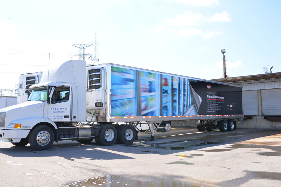 ⇒ Kühlbox für LKW-Trailer aus geformtem Verbundwerkstoff: Ein Koffer für den Kühlanhänger ist aus Verbundwerkstoff im Pressverfahren hergestellt. Das bringt 20 % Gewichtseinsparung und 28 % verbesserte Wärmeleistung. Er wird in Serie gefertigt. - Stratiforme Industries zusammen mit Armines Douai, CEF Centre d’essais ferroviaires, SNCF Réseau