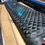 ⇒ FMC für die KTM Carbon-Verbundplatte: Eine hybridisierte Carbon-Verbundplatte für Motorräder wurde in kurzer Zeit erfolgreich für die Serienproduktion entwickelt und in einem Serienproduktionsprozess mit Zykluszeiten unter 4 min produziert. Der Verbundlook wurde mit einer kohlenstoffgeschmiedeten Formmasse (FMC) für den Hauptteil, nicht gewellten Fasern (NCF) für lokale Verstärkungen und Elastomeren für die lokale Dämpfung erzeugt. - Refitech Composites zusammen mit NPK Design