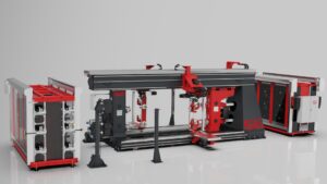 Frimo stellte automatisierte Produktionssysteme für Unterbodenschutz und Batteriegehäuse vor, in denen Materialabzug, Zuschnitt, Wet-Compression-Molding, Bearbeitung, Montage und PUR-Abdichtung in einem rückverfolgbaren Fertigungsfluss zusammenlaufen. KraussMaffei zeigte einen Sandwich-Unterbodenschutz auf LFI-Basis sowie großformatige additiv gefertigte Hochtemperaturbauteile aus PEI, PESU oder PPS.