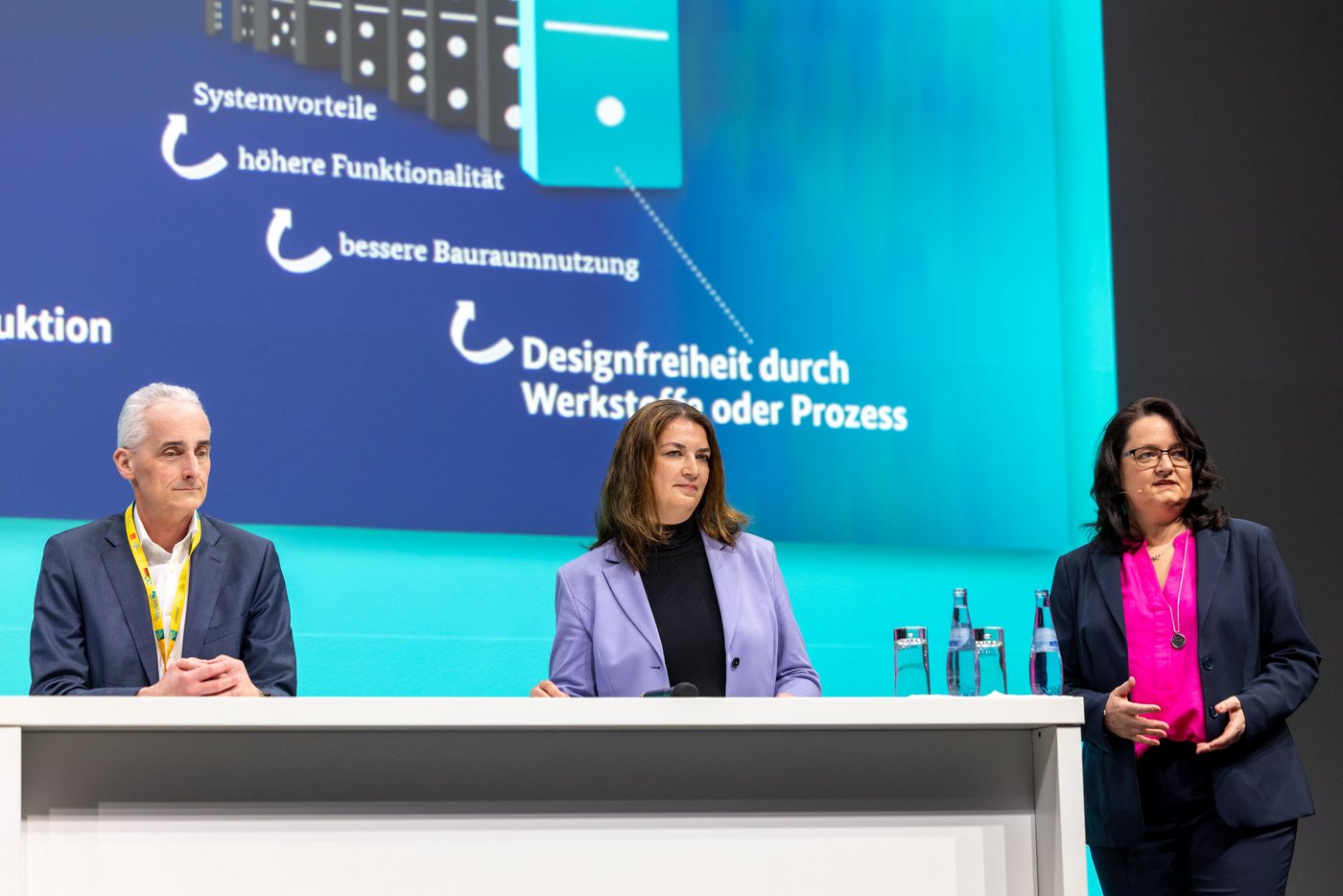 In der ersten Keynote nahm Dr. Markus Steilemann, Vorstandsvorsitzender der Covestro AG und Präsident des Verbands der Chemischen Industrie VCI e.V., diesen Faden auf. Leichtbau sei, so betonte er in diesen turbulenten und unsicheren Zeiten eine Schlüsseltechnologie, denn die Wirtschaft müsse sich neu finden. „Leichtbau ist nicht nur effizient“, betonte er. Auch für die Resilienz unter neuen globalen Bedingungen könne der Leichtbau eine zentrale Rolle spielen.  Dies bezog er vor allem auf die Materialwissenschaften, da hierbei KI, Quantencomputing und der Leichtbau sich ergänzende Verbündete seien. Er bedankte sich zudem bei der Bundeswirtschaftsministerin Reiche für ihr Wirken, das die Rahmenbedingungen für die Industrie verbessere: „Wichtig ist, dass wir gemeinsam wirken.“ Denn nur so bleibe Deutschland, bleibe Europa nicht nur Industriestandort, sondern werde wieder zu einem Industriemagneten.