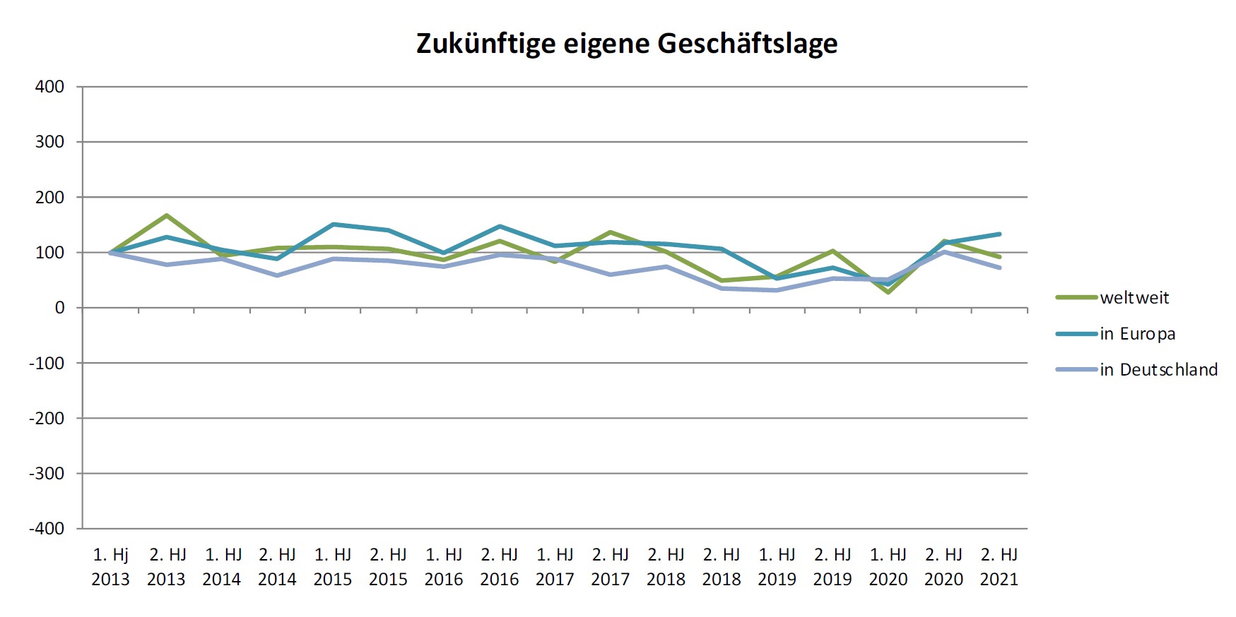 Die Composites-Industrie ist äußerst heterogen und Anwendungsbereiche finden sich in fast allen relevanten Industriesegmenten. Diese waren und sind sehr unterschiedlich von Effekten wie der Pandemie, Rohstoffmanel oder fehlender Halbleiter betroffen. Daher werteten mehr als 70 Prozent der Teilnehmer der aktuellen Befragung die Geschäftslage eher positiv oder sogar sehr positiv. Die Werte des Index sind damit schon fast wieder auf Vorkrisenniveau.