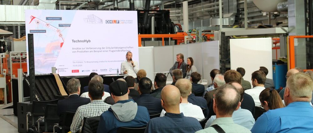 Bild oben: Dr. Tim Fröhlich (IWF der TU Braunschweig) präsentiert den Projektabschluss mit Frank Schlegel (FIT-Umwelttechnik GmbH) und Nicole Allgaier (EnerKíte GmbH) auf dem OHLF-Dialog im Mai 2025. (Quelle: M&K OHLF)
