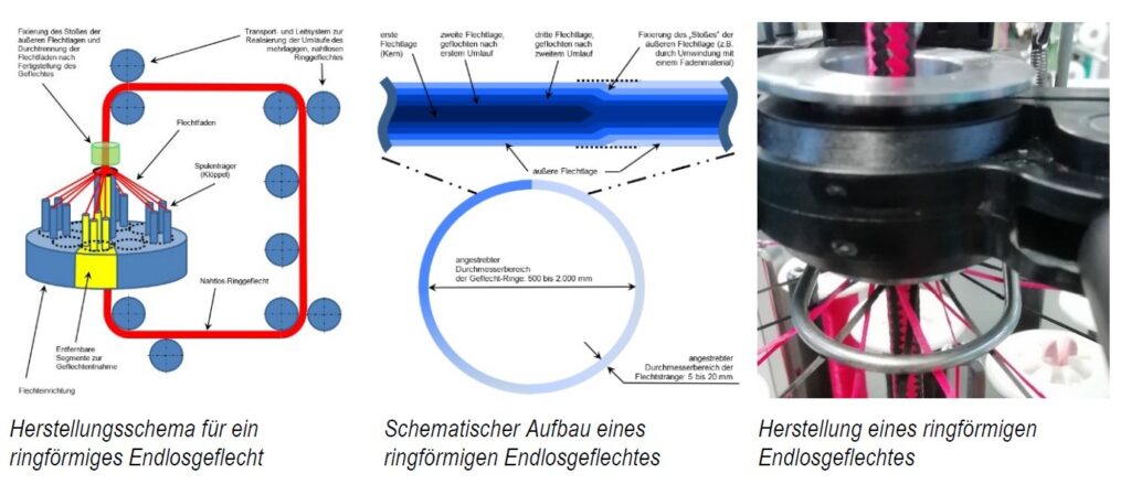 Bild oben: Forschungsprojekt zur Herstellung nahtloser, ringförmiger Geflechte aus Hochleistungsfasern (Quelle: STFI)