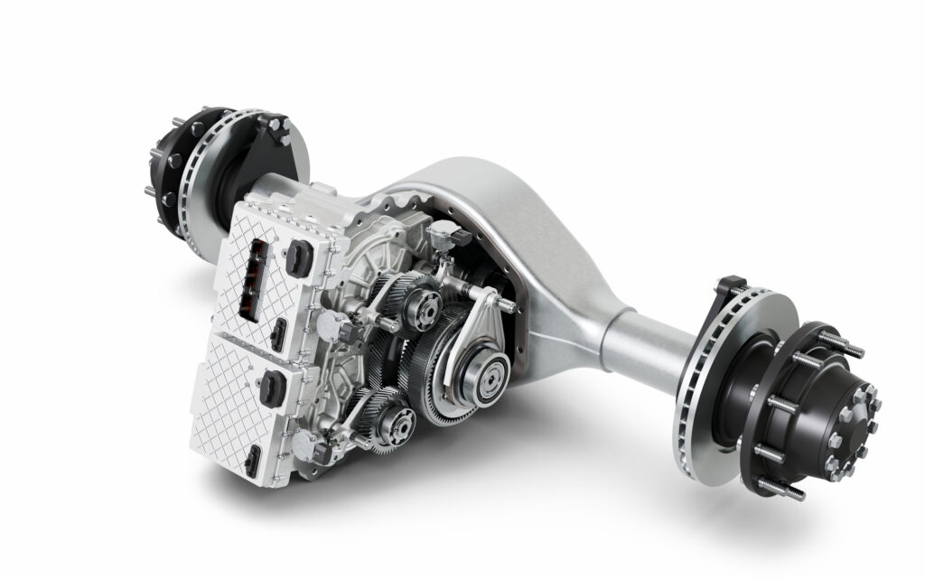 Auf der IAA Nutzfahrzeuge zeigte Schaeffler an einem kompletten E-Achse-Exponat mit zwei E-Motoren, 3-Gang-Getriebe, elektromechanischem Aktuator und Siliziumkarbid-Leistungselektronik welche Potenziale sich im Zusammenspiel zwischen Komponenten und Subsystemen ausschöpfen lassen. Die E-Achse beinhaltet unter anderem sogenannte Insert-Unit-Radlager, die, mit Gussgehäusen zu Radlagereinheiten verbaut, auf die Achse montiert und anschließend verspannt werden.