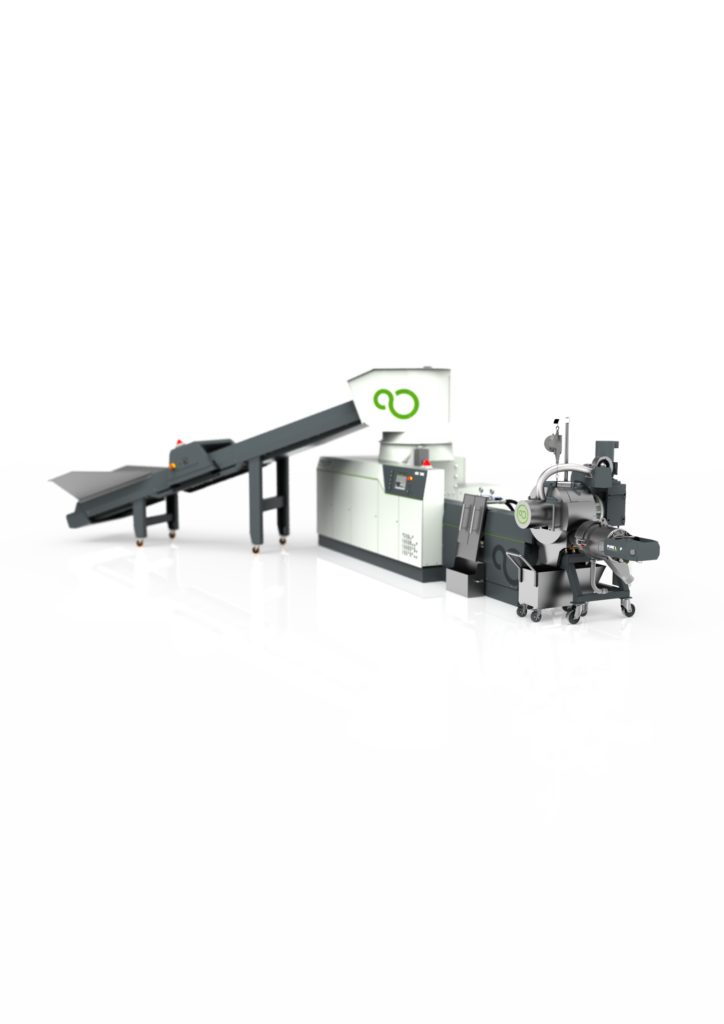 Die Shredder-Extruder-Kombination wurde speziell für das Recycling unterschiedlicher Materialvarianten und -formen konzipiert: ob solide Teile oder Hohlkörper, Rollenware oder Stanzabfälle oder typische Abfälle in der Spritzießproduktion wie Angüsse, Anspritzpatzen und Mahlgut. Möglich macht dies die besondere Zuführungstechnologie, eine Kombination aus Doppelschiebersystem und Einwellenzerkleinerer.