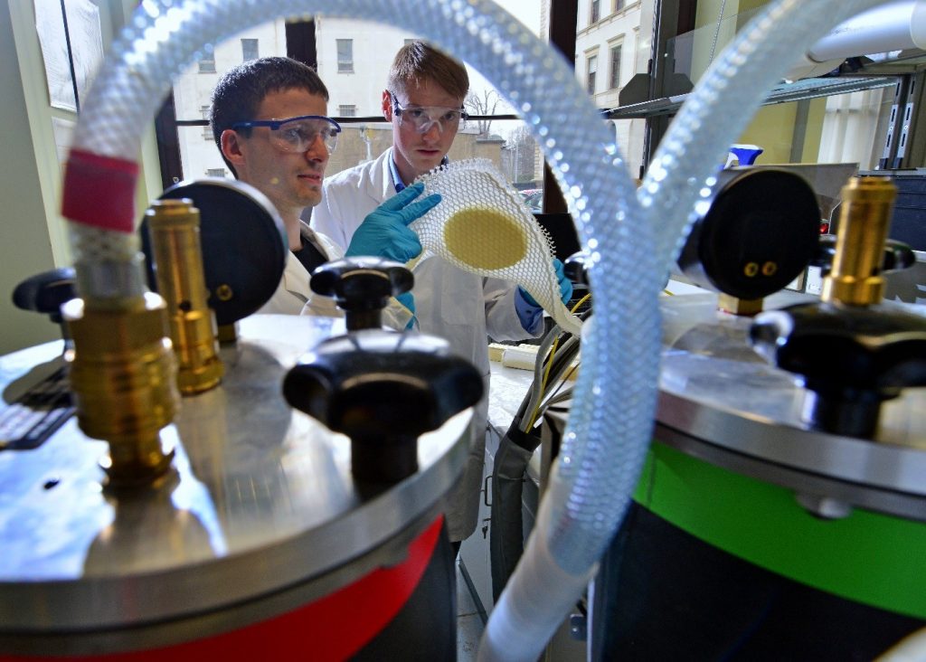 Ein Team der TU Chemnitz kombinierte Schaum und Textil als zukunftsweisenden Materialmix mit herausragenden Eigenschaften für den Leichtbau in einem speziellen Fertigungsverfahren. Dafür entwickelten sie erstmals gemeinsam mit einem Team des Fraunhofer-Instituts für Techno- und Wirtschaftsmathematik (ITWM) Kaiserslautern das Simulations-Tool „Foam“.