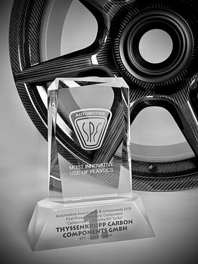 Thyssenkrupp Carbon Components ist für seine geflochtene und ultraleichte Carbonfelge von der Society of Plastics Engineers (SPE) im Rahmen der Automotive Awards 2019 ausgezeichnet worden.