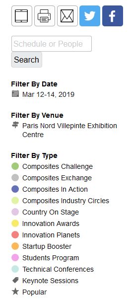- Am Mittwoch, den 13. März, beschäftigt sich eine Fachkonferenz mit den Themen Composites in Architektur, Bauwesen & Infrastruktur. Die Referenten kommen unter anderem von ENSA, Aimplas, Acell, Hexion und StrucTeam. Für die Konferenz ist allerdings eine eigene Anmeldung notwendig. Die Veranstaltung beginnt um 9:30 Uhr und endet um 13 Uhr. Nähere Infos gibt es hier.
