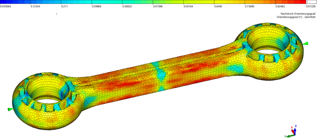Als Nebenresultat der Forschung entstehen neue Berechnungsmethoden, die die Einflüsse der Herstellung auf das quasistatische und zyklische Verhalten der Werkstoffe berücksichtigen. Mit den erweiterten Simulationsmethoden lassen sich je nach Anordnung der Fasern im Bauteil beispielsweise Materialeigenschaften wie Steifigkeit und Festigkeit abschätzen.