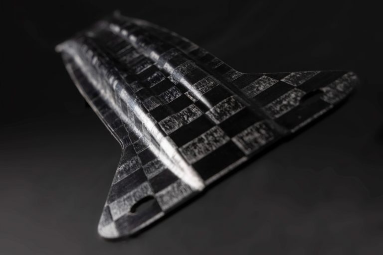 Faser-Metall-Laminate mit W8SVR-Gewebe – Batteriegehäuse-Rahmen (Quelle: Huesker / Lehrstuhl für Automobilleichtbau (LiA), Paderborn) In einem zweiten Projekt mit dem Lehrstuhl für Automobilleichtbau (LiA) in Paderborn wurde W8SVR Woven für eine Multimaterialkonstruktion eines Batteriegehäuserahmens eingesetzt und zeigte ein sehr gutes Verarbeitungsverhalten. Biegefestigkeit und Steifigkeit gegenüber dem gewichtsäquivalenten Stahl konnten erheblich gesteigert werden.